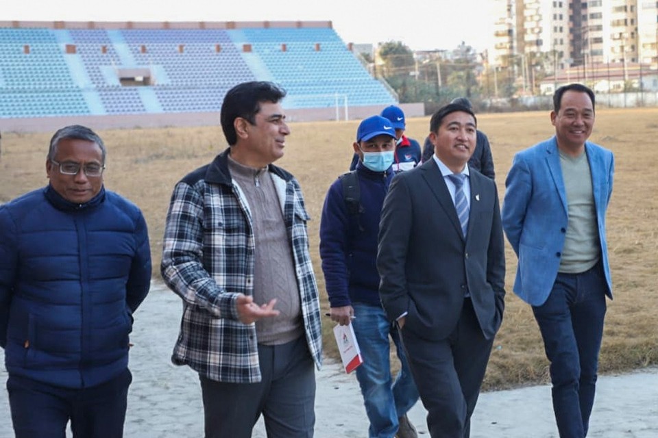 Kathmandu (GoalNepal) - National Sports Council Member Secretary Tanka Lal Ghising of the National Sports Council, ANFA President Pankaj Bikram Nembang, Vice President Dawa Lama, Ex-Co member Ramesh Byanjankar, and General Secretary Kiran Rai visited Chyasal Ground to assess the ground.