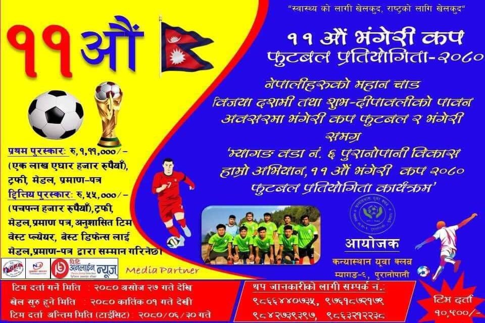 Uniting Communities through Sports The vibrant community of Myangad-6, Puranopani, is abuzz with excitement as the Kanyasthan Youths Club prepares to host the prestigious 11th Bhangeri Cup Football Tournament 2080.