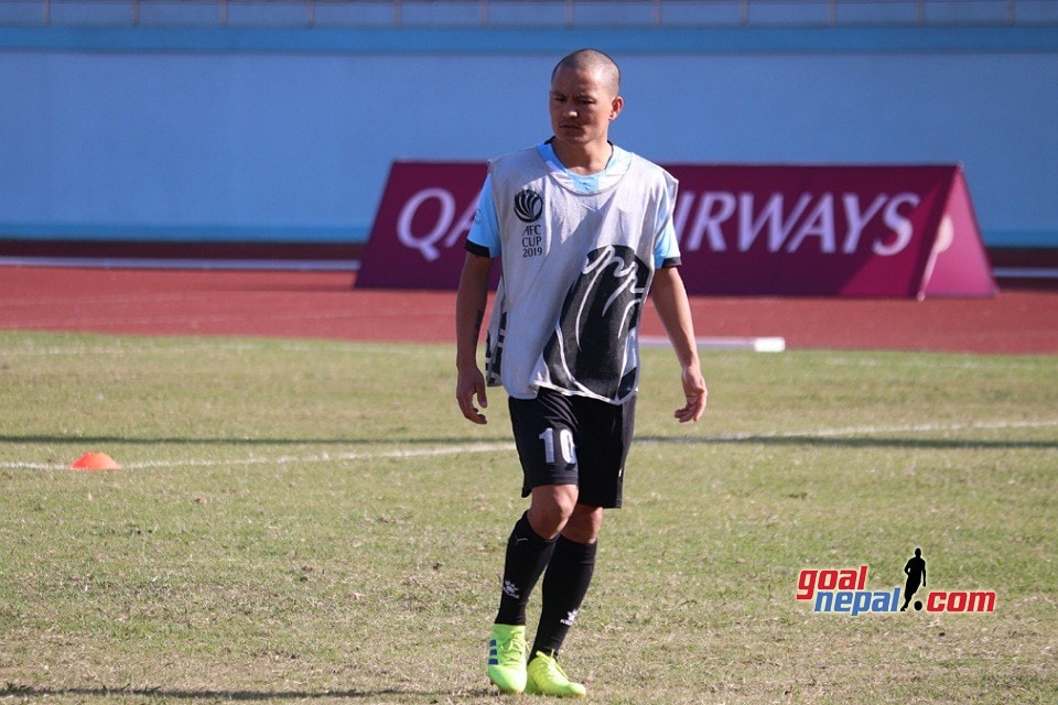 Santosh Katuwal ready with a long throw. Very calm and compose defensive display from MMC.