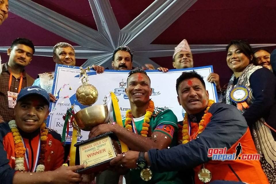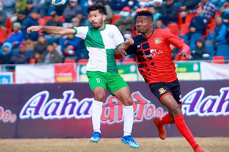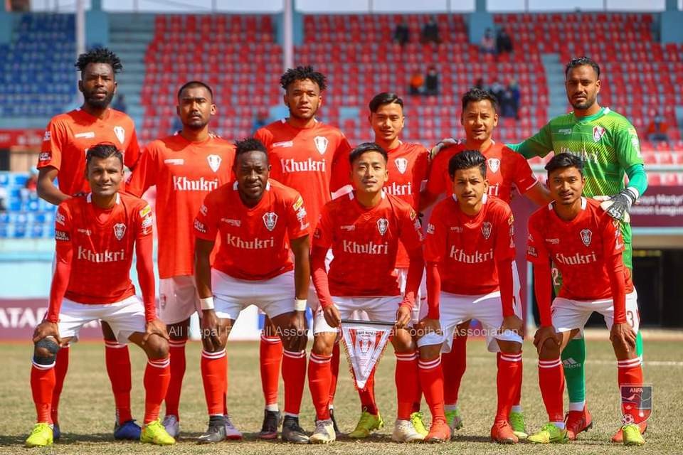 GOAL! Three Star Club takes a lead. Sushant Shrestha scores.
