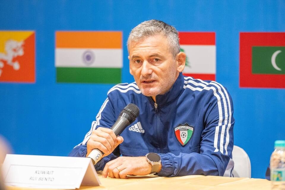 Ref Prajwol flashes two yellow cards to Kuwait players and one to the coaching staffs.