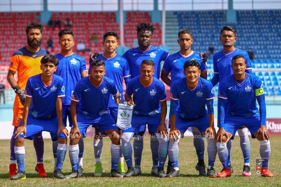 Three Star Club are putting pressure on Chyasal Youth Club in the opening minutes of the game.