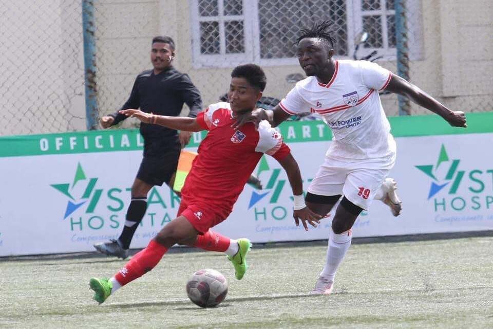 Sumit Shrestha needs to play cautiously. He commits a foul again. He has already been with a yellow card.