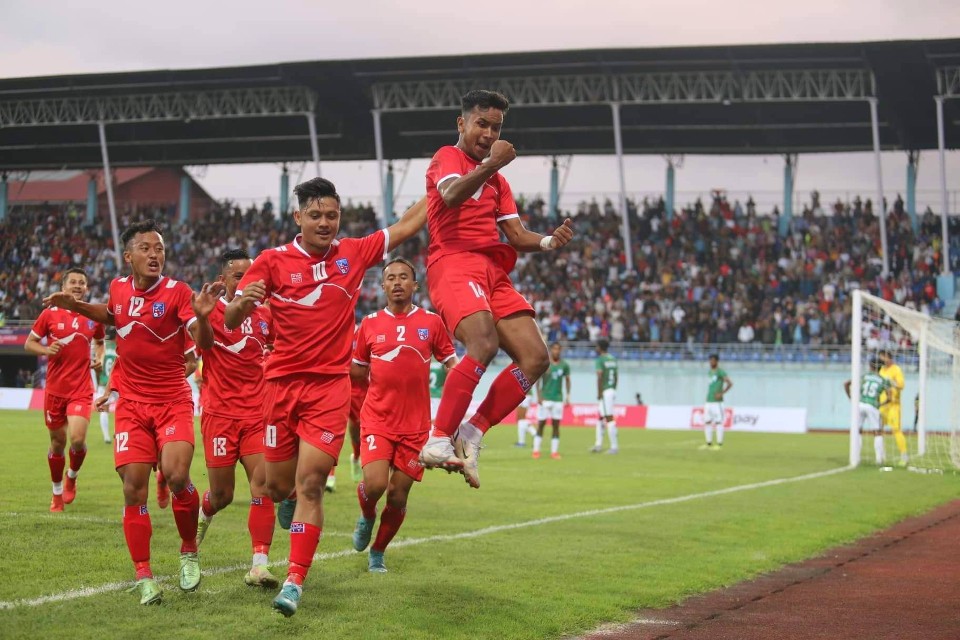 GOAL. Bhutan takes a lead. Tsenda Dorji scores.